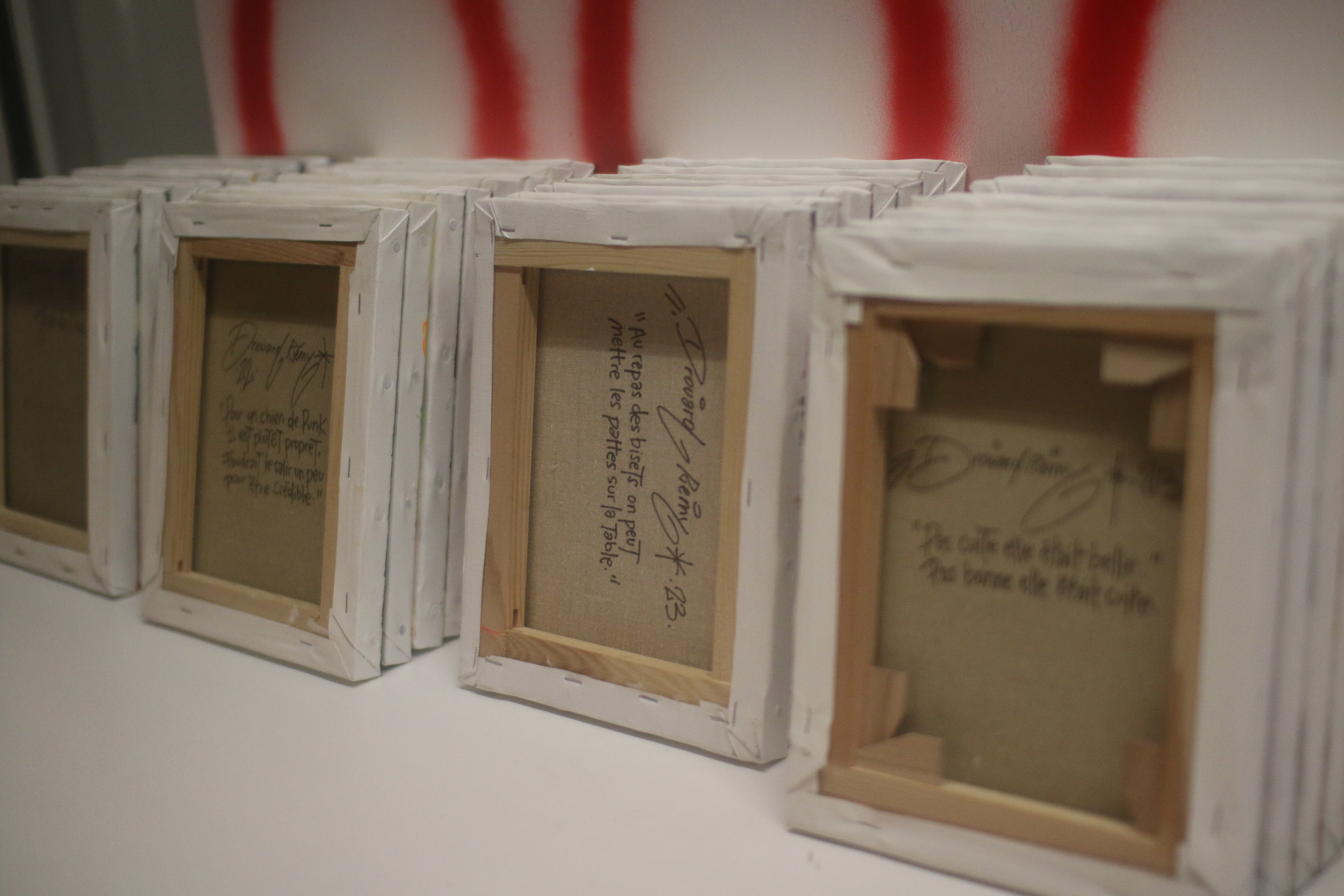 Rémy Drouard, La peinture et l’écriture sont liées, vous ne pouvez pas le nier, trente-six toiles présentées de dos, 27x22cm chacune, 2020-2023.