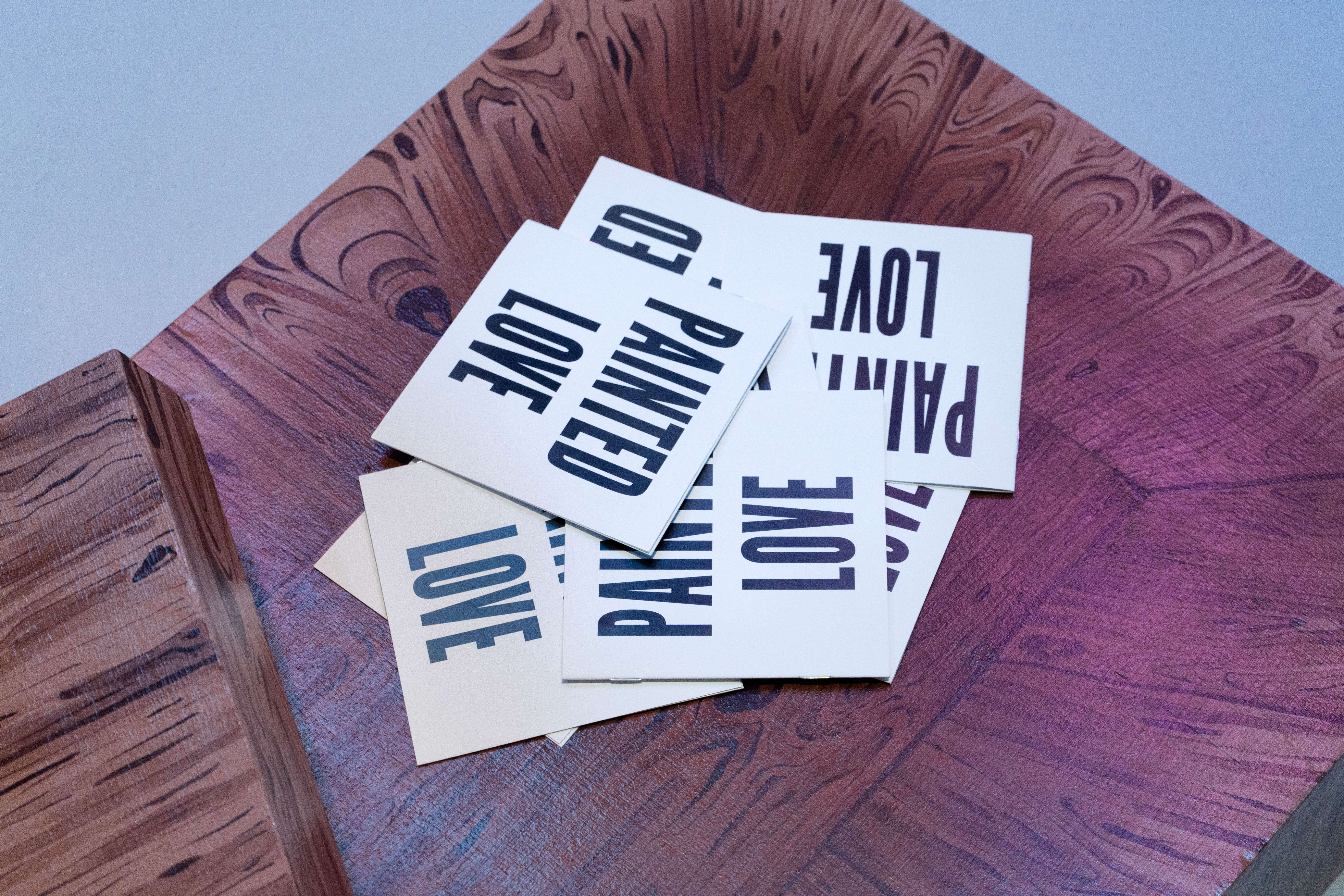 Painted Love, édition de textes de Bérénice Nouvel design graphique par Églantine Marcel. Éditions distribuées tout au long de l’exposition.